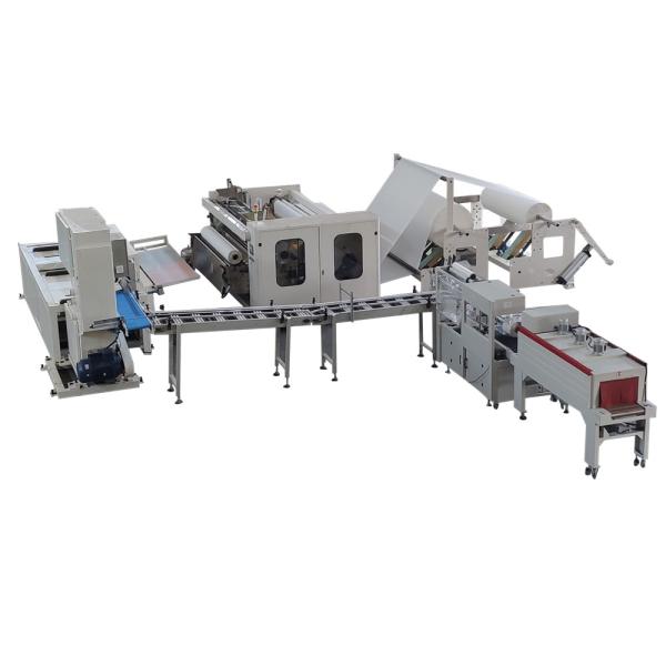 XY-TQ-A-H Big diameter 150-280mm maxi roll paper towel rewinding band saw heat shrink packing machine production line